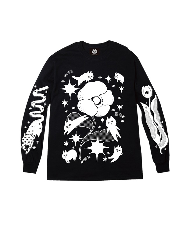 かなしい夜をこえた日のために くろいいぬの ながそでTシャツ を作りました かなしいことがあっても つかれていても くるしいことがあっても 夜が明けてやってくる 外に出ないといけない日 人に会わないといけない日 そんな日に 「まあなるようになるかあ」って 思えるように おおきなくろい犬は かなしみのしるし それをせおってでも なるようになるしかないねって 日々を重ねる人たちの 絆創膏がわりになるような そういうながそでTシャツを つくりたいとおもいました かなしみさえも飼い慣らして 生きていきたいです - オープンエンド糸を使用したすこしざらっとした質感の ロングスリーブTシャツでざっくりした風合いがすき! 個人的にはオーバーサイズでだるっと着て欲しい。 シルクスクリーンでイラストをプリントしています。 日本の工場で職人が1枚づつプリントしてくれています。 - サイズ詳細:画像3枚目を参照 厚み:6.0oz - - - - - - - - - - - - - - - On the morning after a sad night, I hope you can put on this long-sleeve T-shirt. When something hurts, when you’re tired, when life feels heavy— the night still ends, and morning still shows up. There are days you have to go outside, days you have to meet people, even if you don’t feel like it. On those days, I hope you can tell yourself, “It’ll be okay… things will fall into place.” The big black dog is the shape of sadness. And even if you’re carrying it on your back, we still keep going, saying, “Maybe it’ll turn out somehow.” For people who live their days like that, I wanted this T-shirt to feel like a little bandage— something gentle you can wear. I want to learn to live while gently taming even my sadness. - silk-screen print Each piece is printed one by one by craftsmen at a factory in Japan. Size details: See 3rd image Thickness: 6.0oz