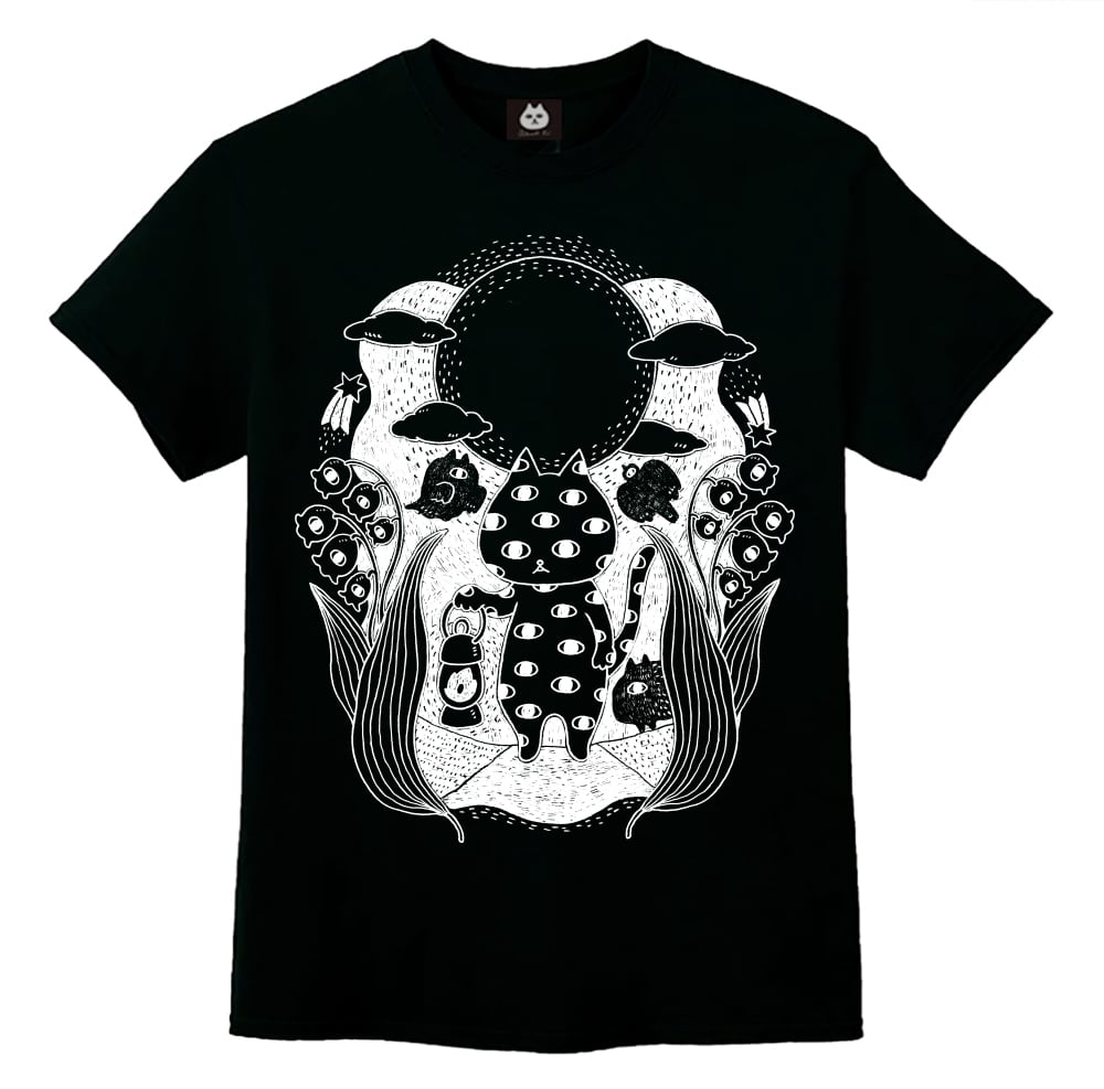 ランプをもってお散歩する目ネコちゃんのTシャツ
