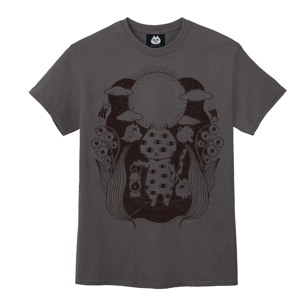 ランプをもってお散歩する目ネコちゃんのTシャツ