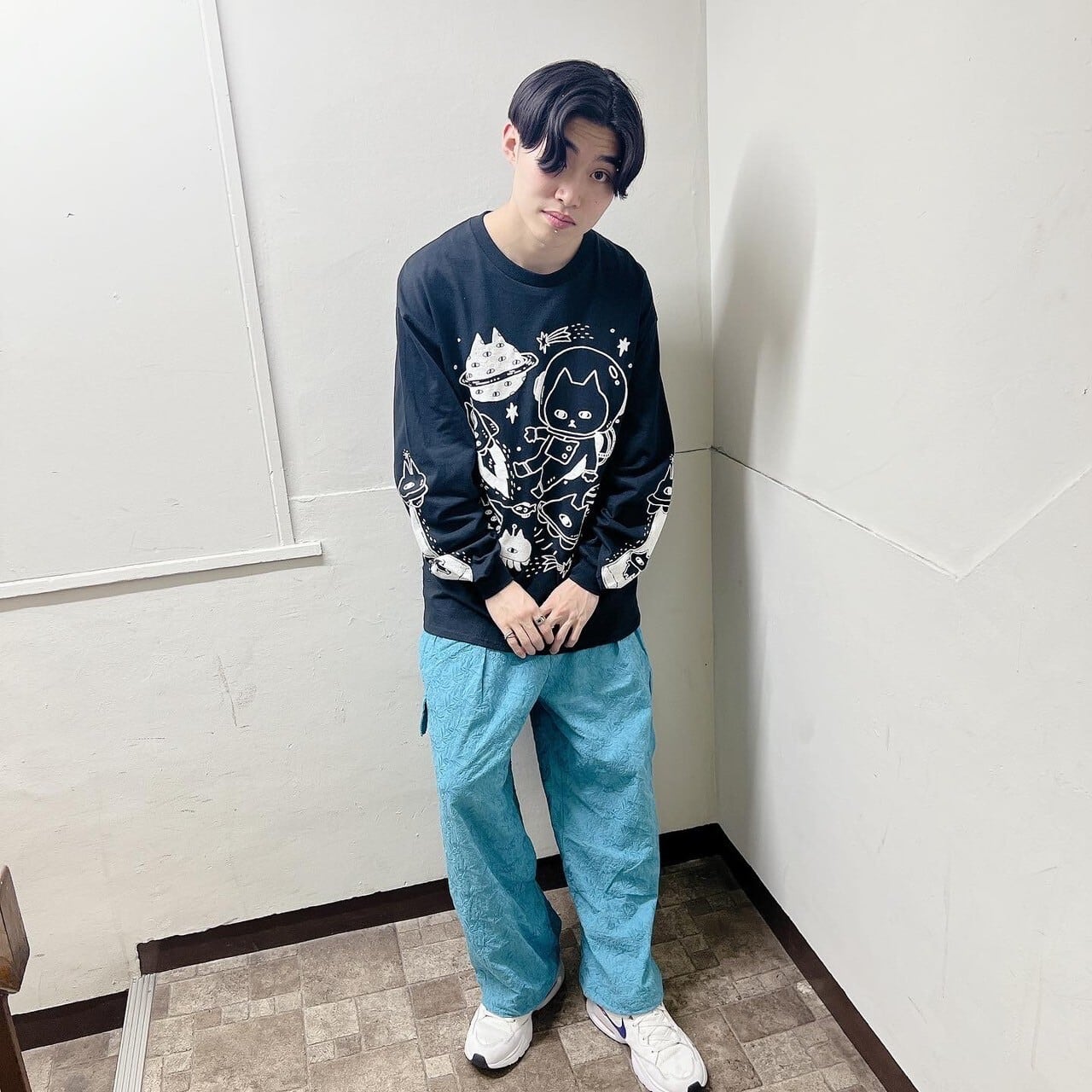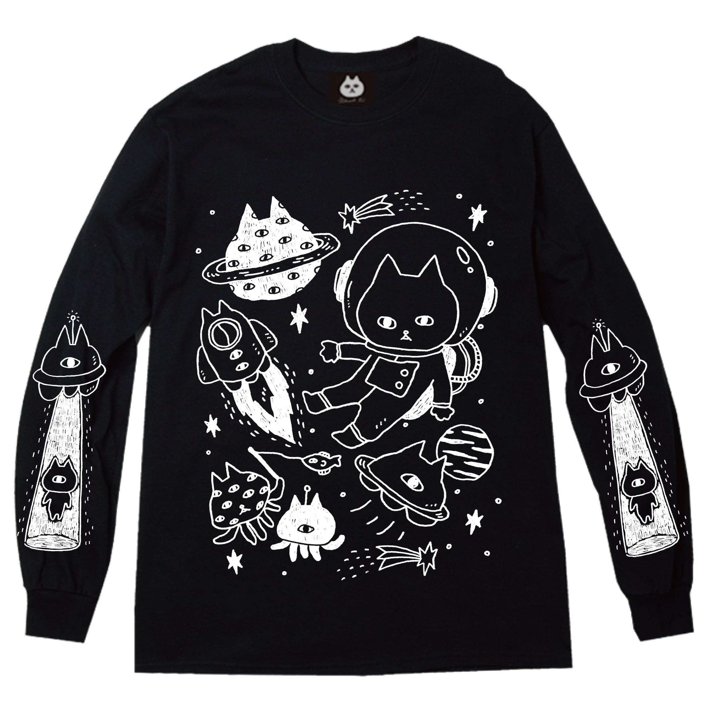 宇宙ネコながそでTシャツ / くろにしろ
