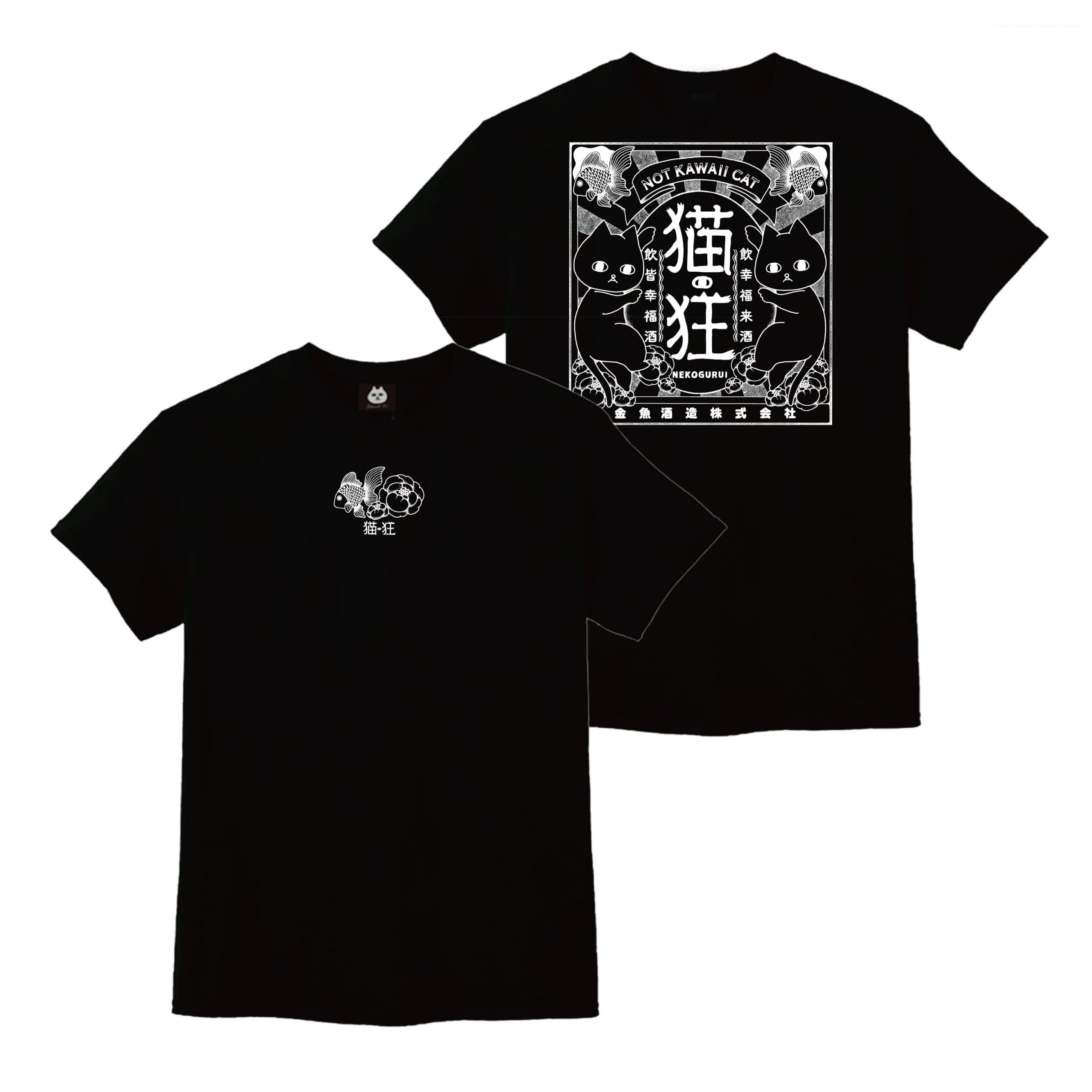 ネコさけはんそでTシャツ / くろにしろ