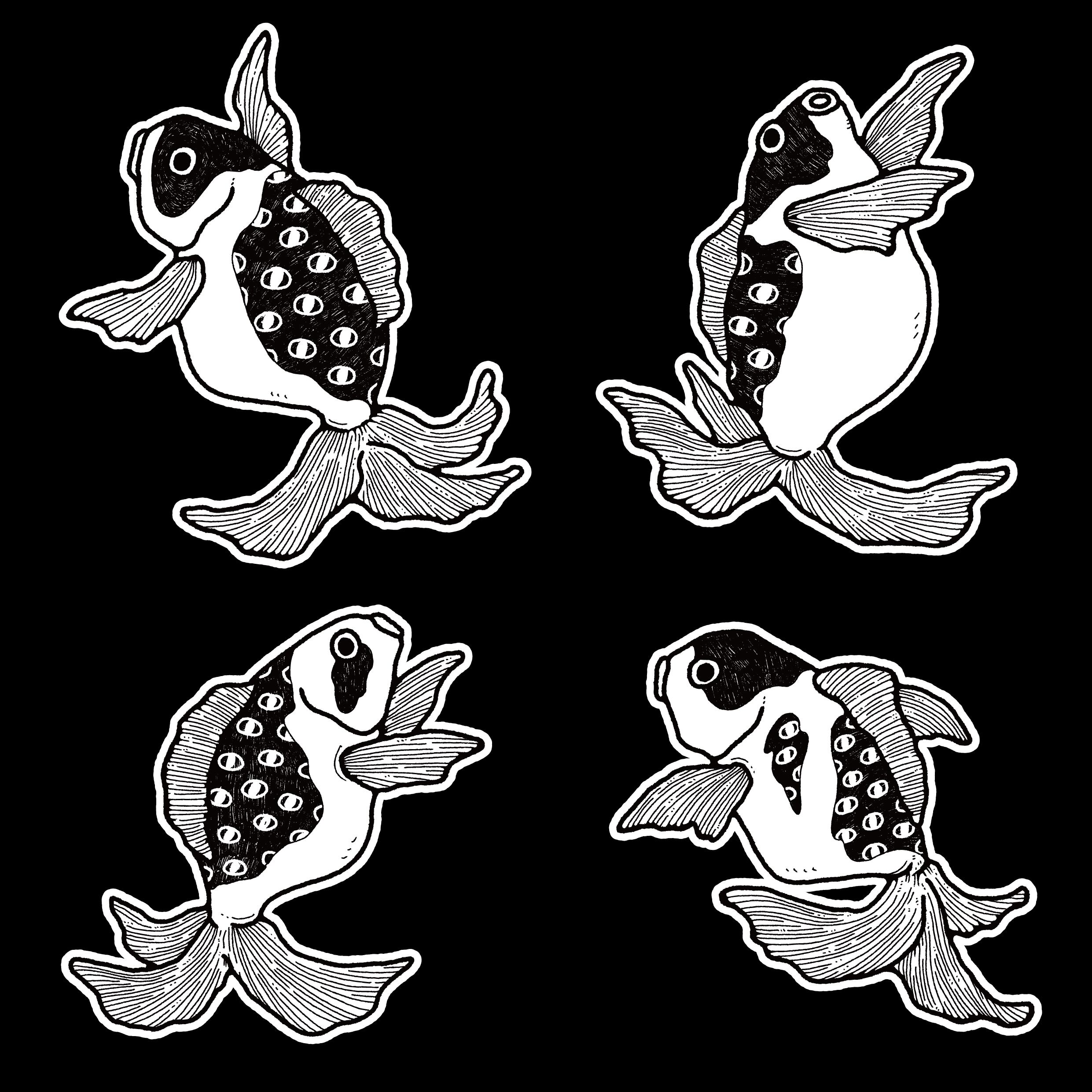 背中には踊る金魚がプリントされています