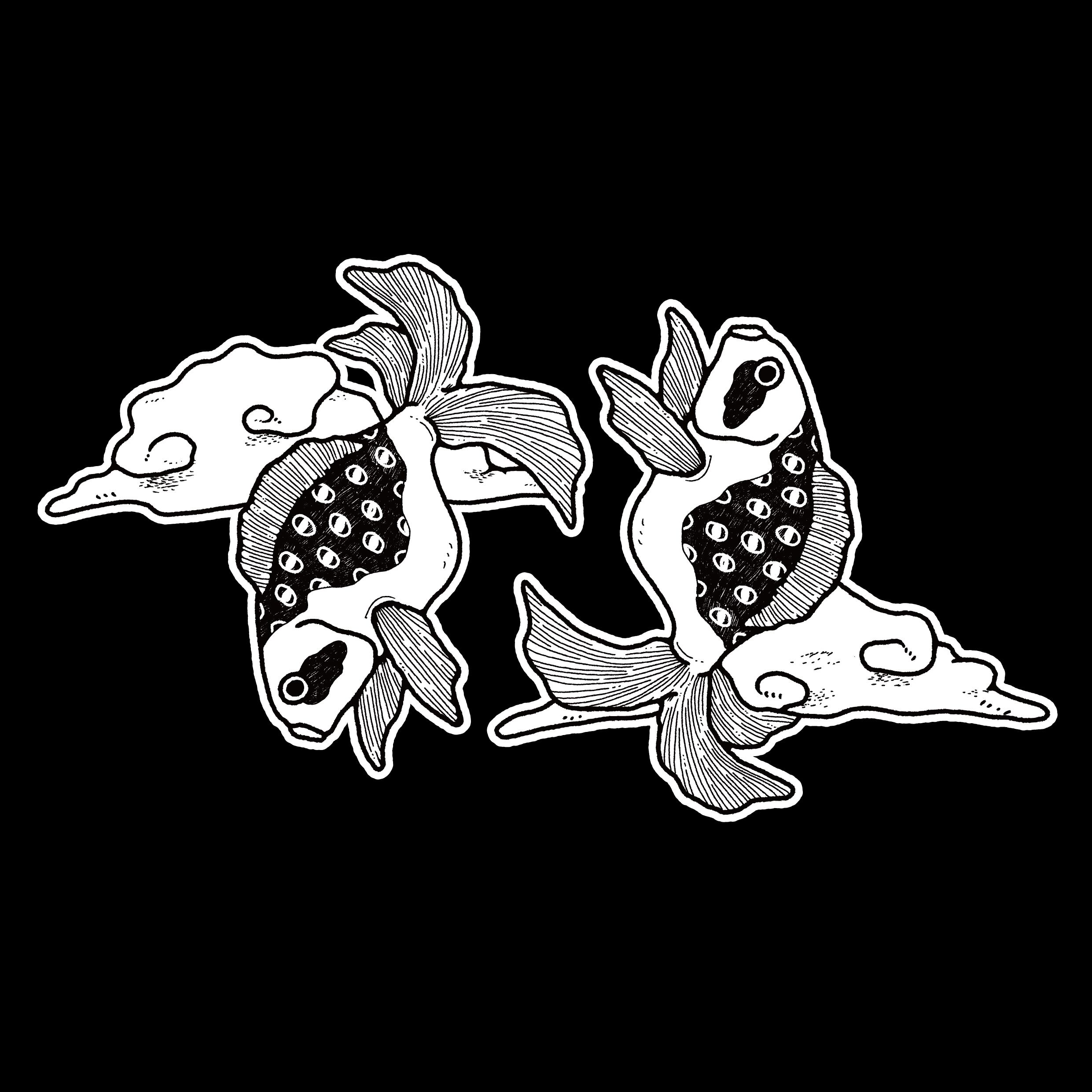 Dancing Nekomata T-Shirt with back printed with dancing goldfish.